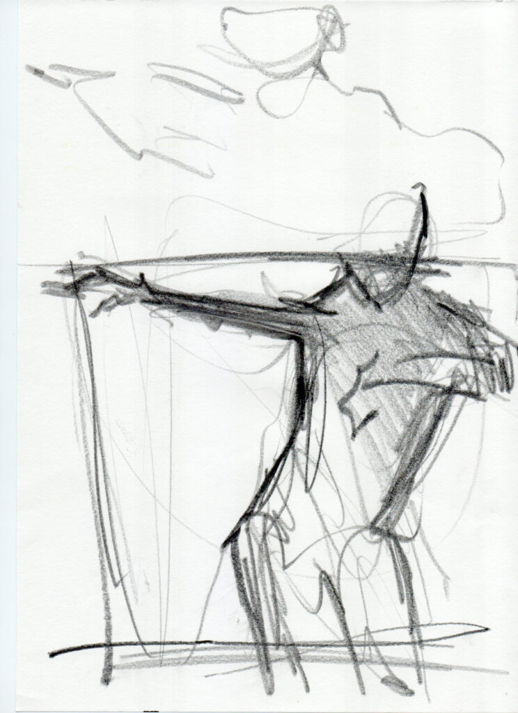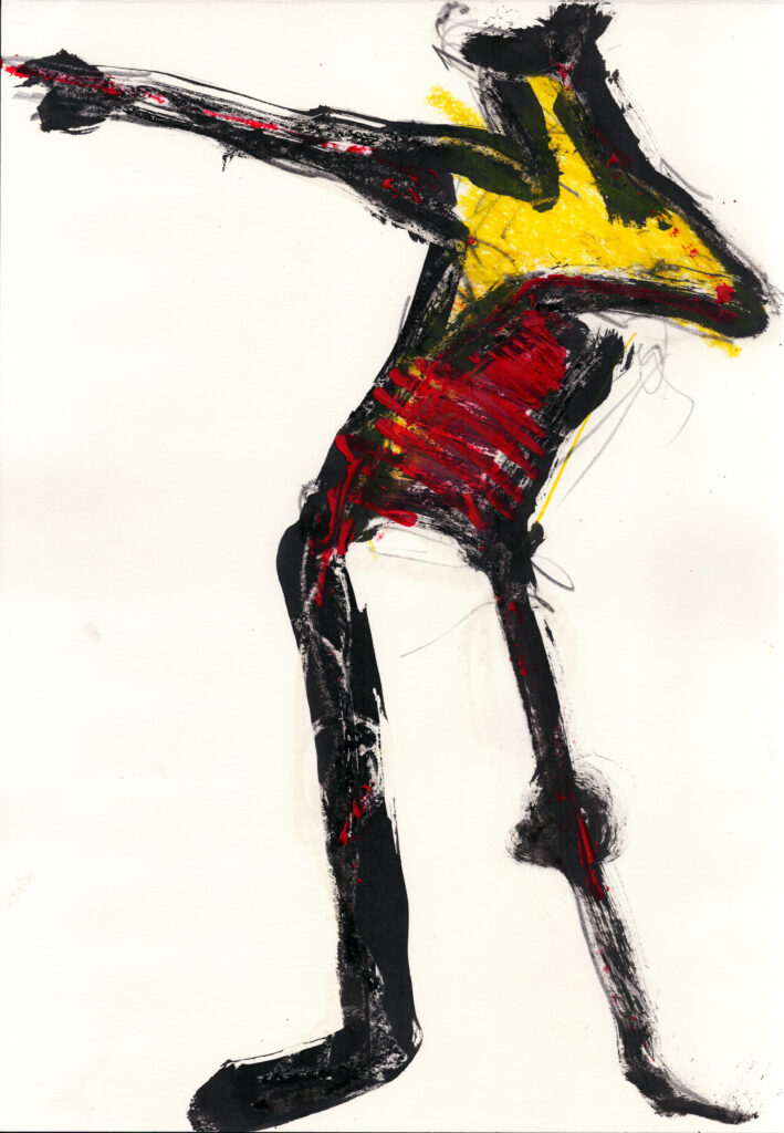 KnightFall_2 Grafit, Tusche, Wachs, Sepia auf Papier 120×170