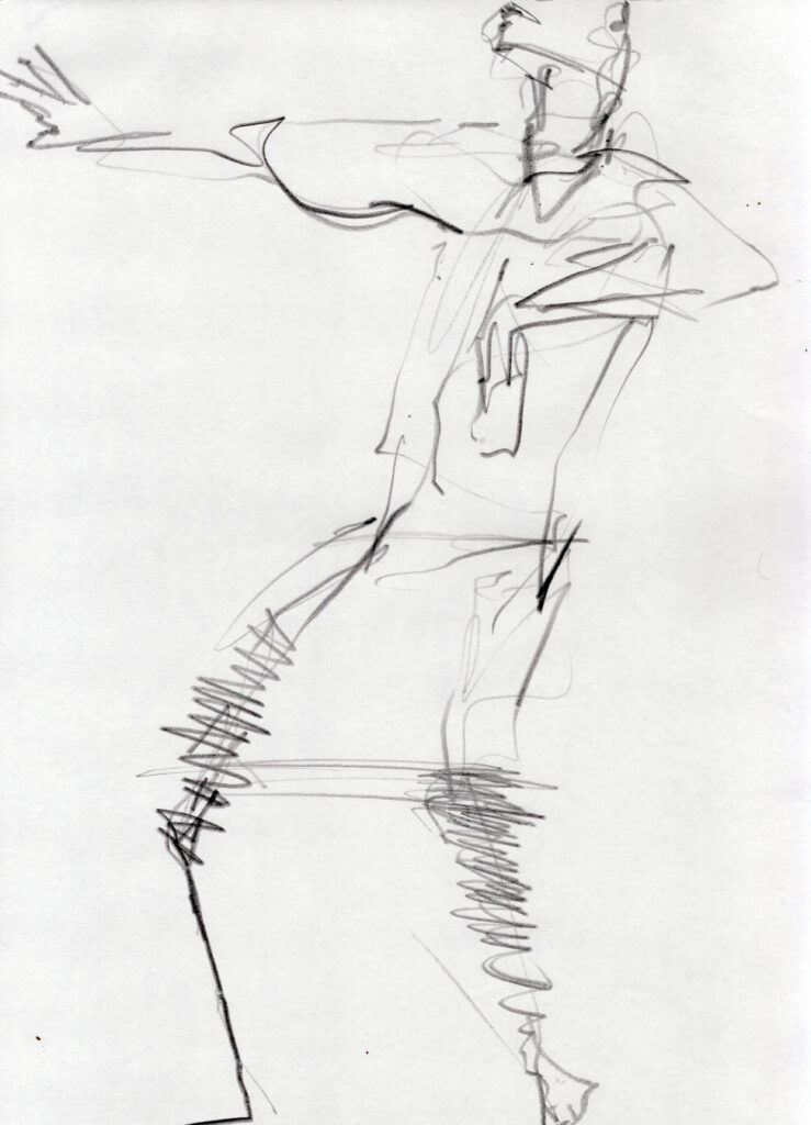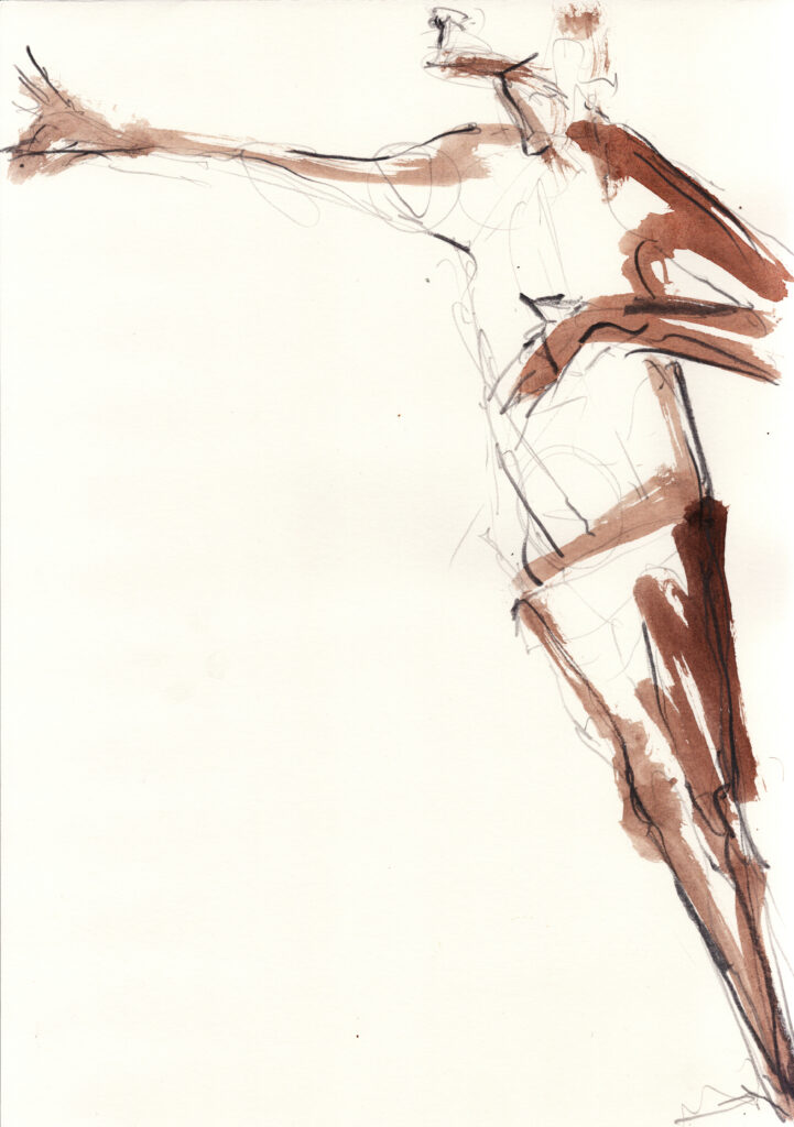 KnightFall_1 Grafit, Tusche, Wachs, Sepia auf Papier 120×170